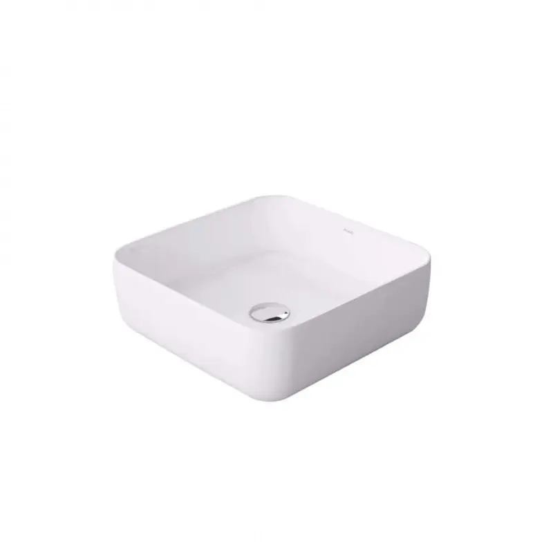 Lavabo sobre encimera cuadrado de cerámica blanca sin orificio para grifería 39x39 cm A