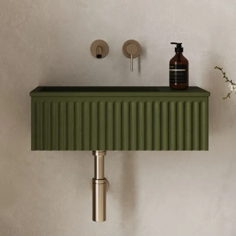Lavabo rectangular de piedra sintética verde de 43 cm para encimera/suspendido